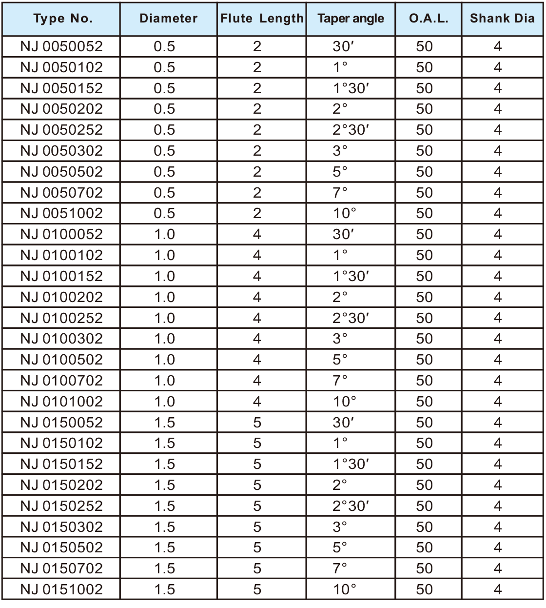 NJF超微粒长斜度刀2刃